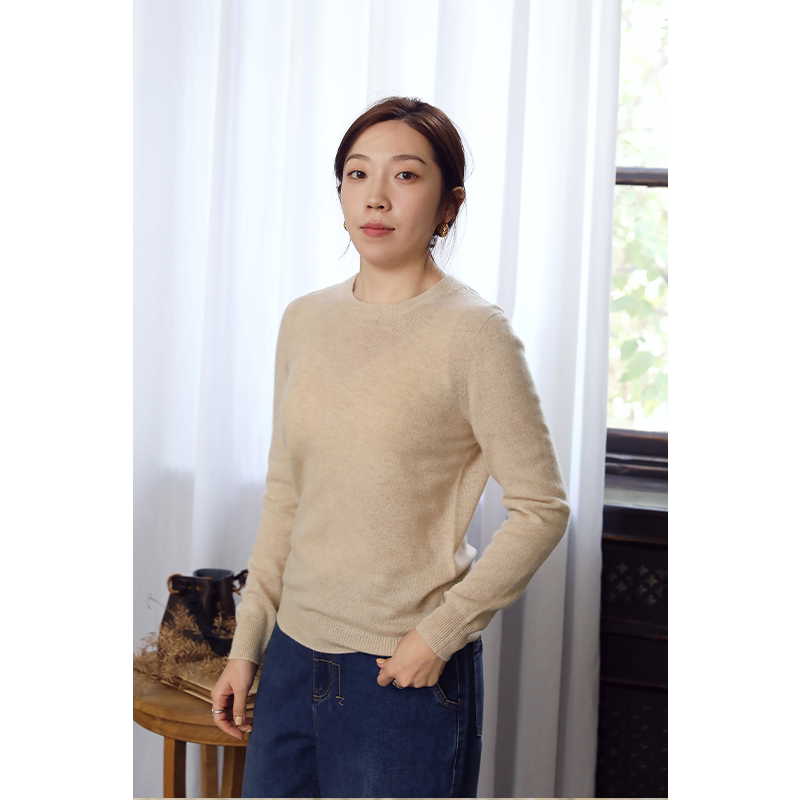 无色无味山羊绒毛衫女款圆领简约长袖红色毛衣打底针织衫保暖上衣
