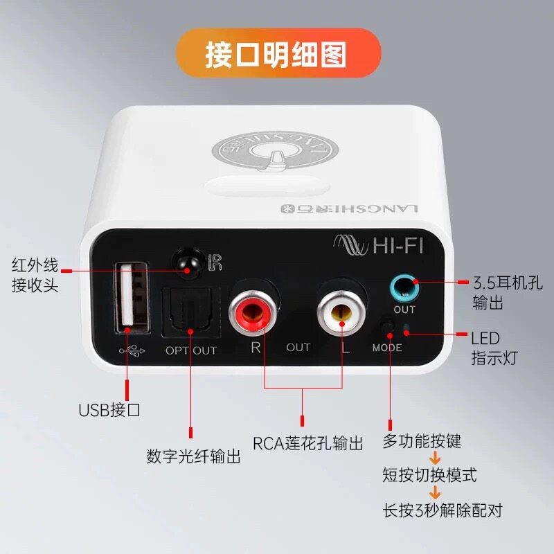 蓝牙音频接收器无损HIFI播放U盘6.0低延时适配功放音响音箱转换器