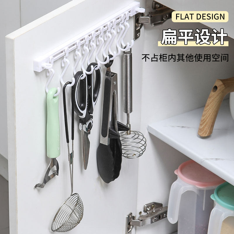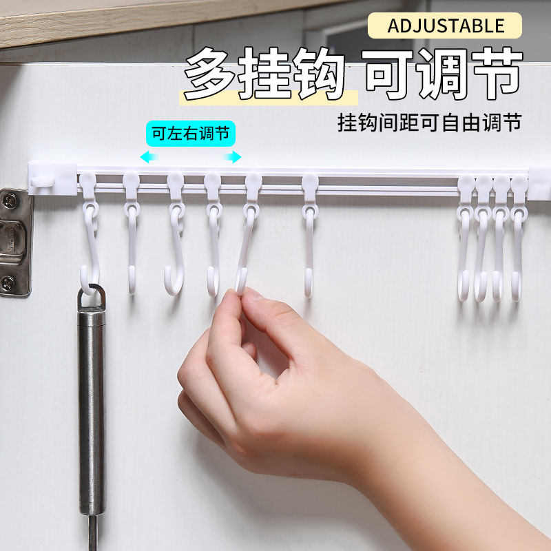 厨房挂钩架免打孔轨道滑轨排钩收纳挂钩神器橱柜门后收纳架柜子