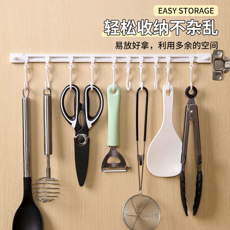 橱柜门后挂钩一排可滑动轨道免打孔粘挂杆神器勺子铲子厨具收纳架