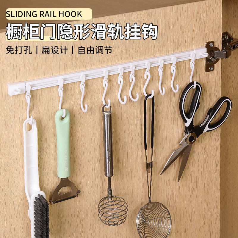 厨房收纳滑动轨道挂钩柜门收纳挂钩神器免打孔橱柜门后收纳置物架