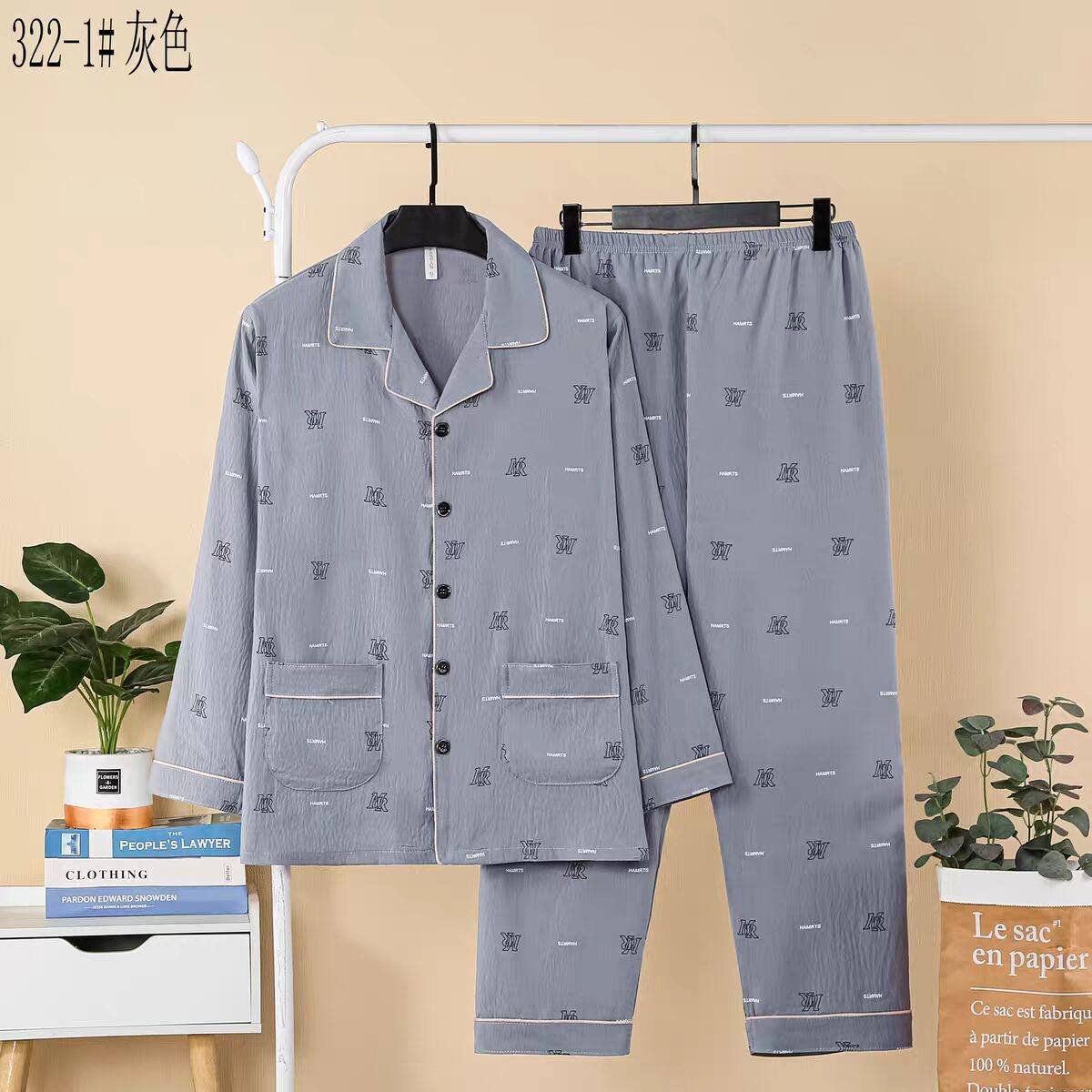 云朵棉睡衣男夏季长袖空调服绵绸中老年人男士春秋薄款加肥家居服