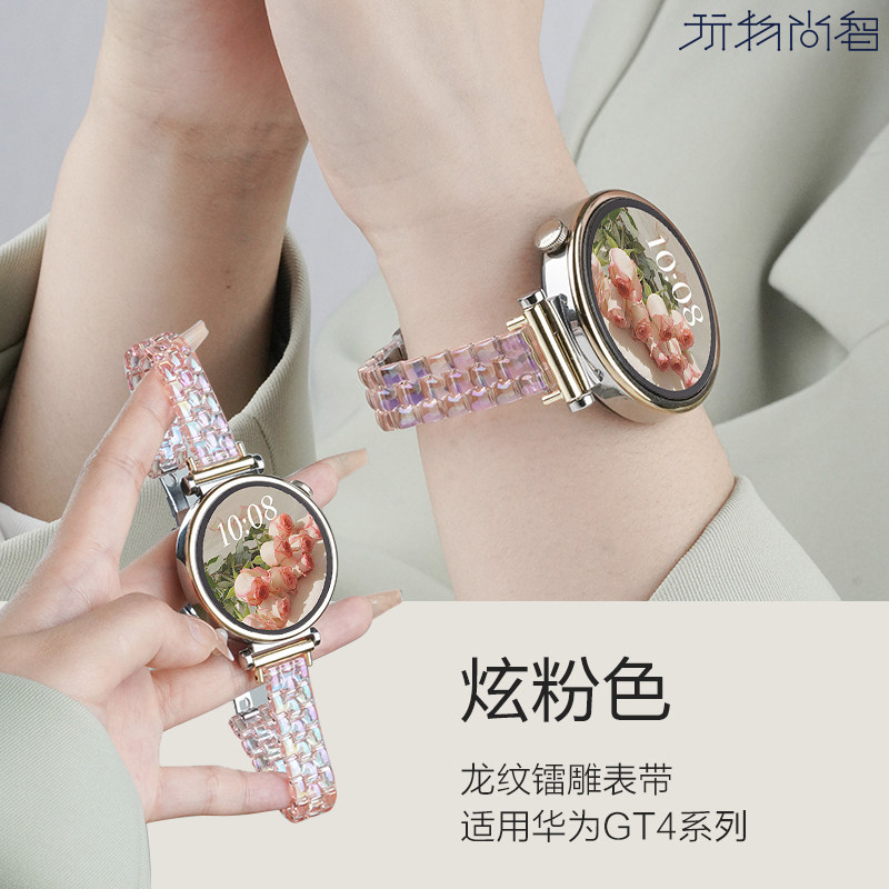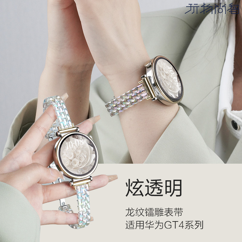 适用GT4/GT56女款41mm原装真皮表带按压款真皮手表带GT5pro女皮带