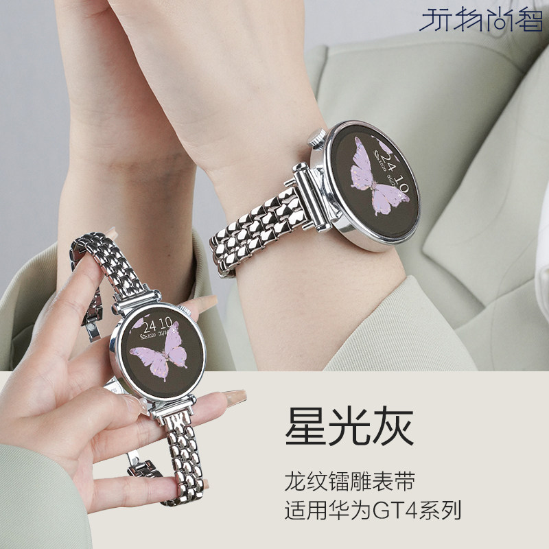 玩物尚智适用三星Galaxywatch7/6表带watch4/5pro手表classic6active1/2代龙纹镭射智能Gears3/s4/2手表腕带