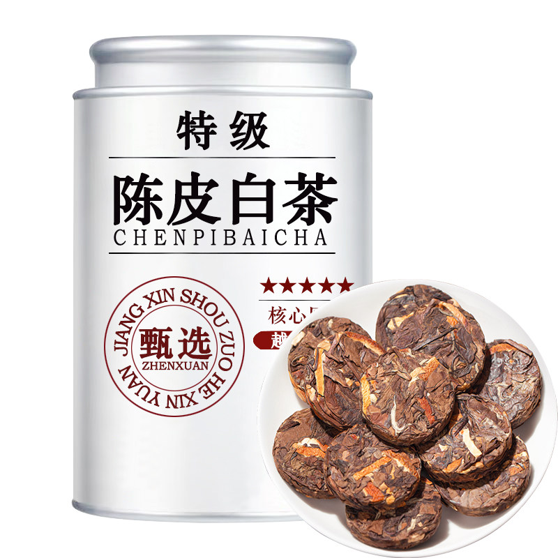 陈皮白茶福鼎老白茶独立小饼高山寿眉贡眉紧压茶叶罐装特级自己喝