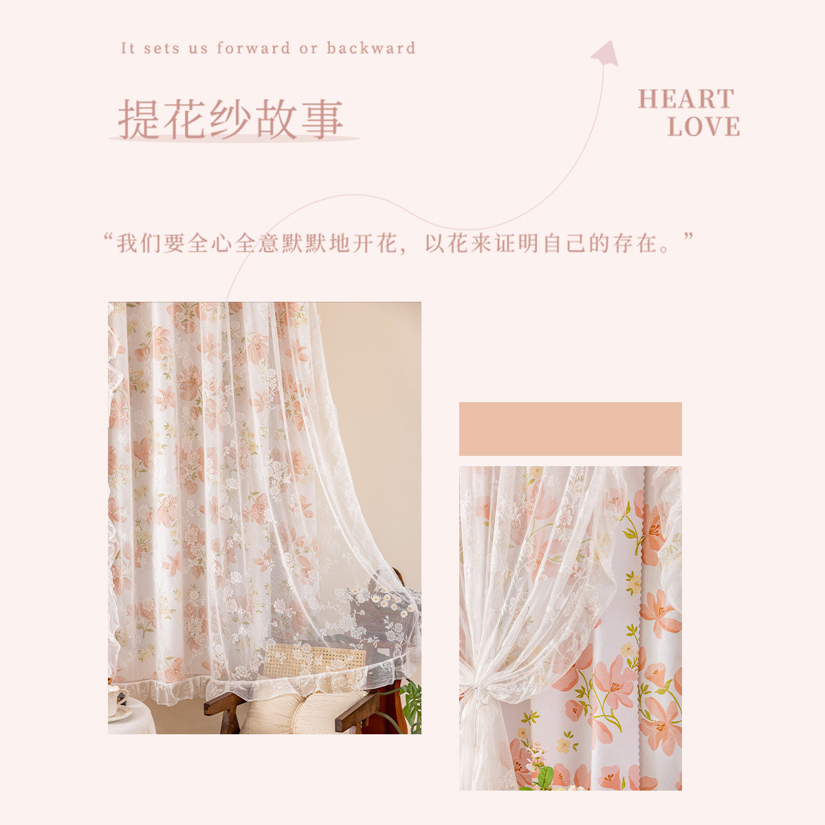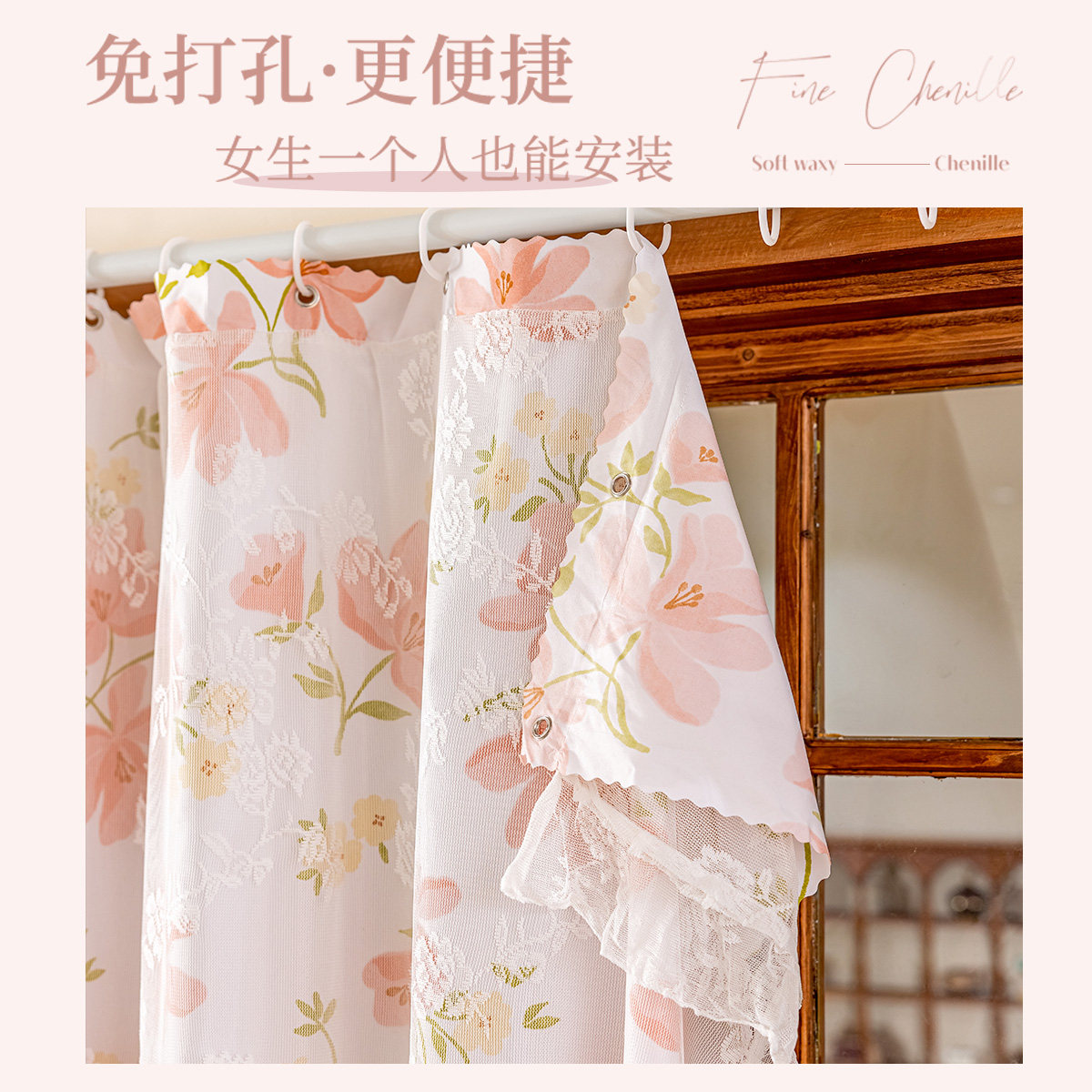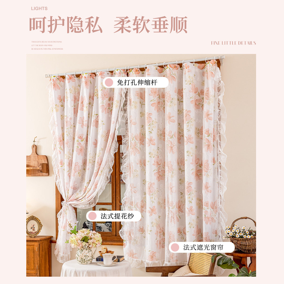 法式复古梦幻提花纱帘免打孔蕾丝遮挡纱帘卧室门帘公主房遮光护隐