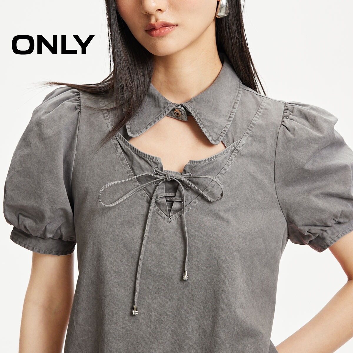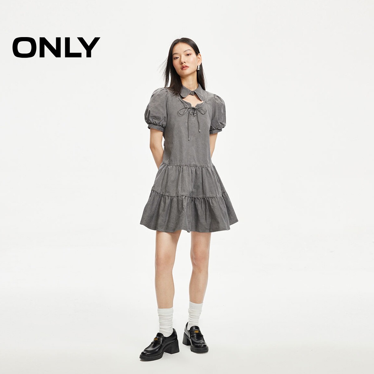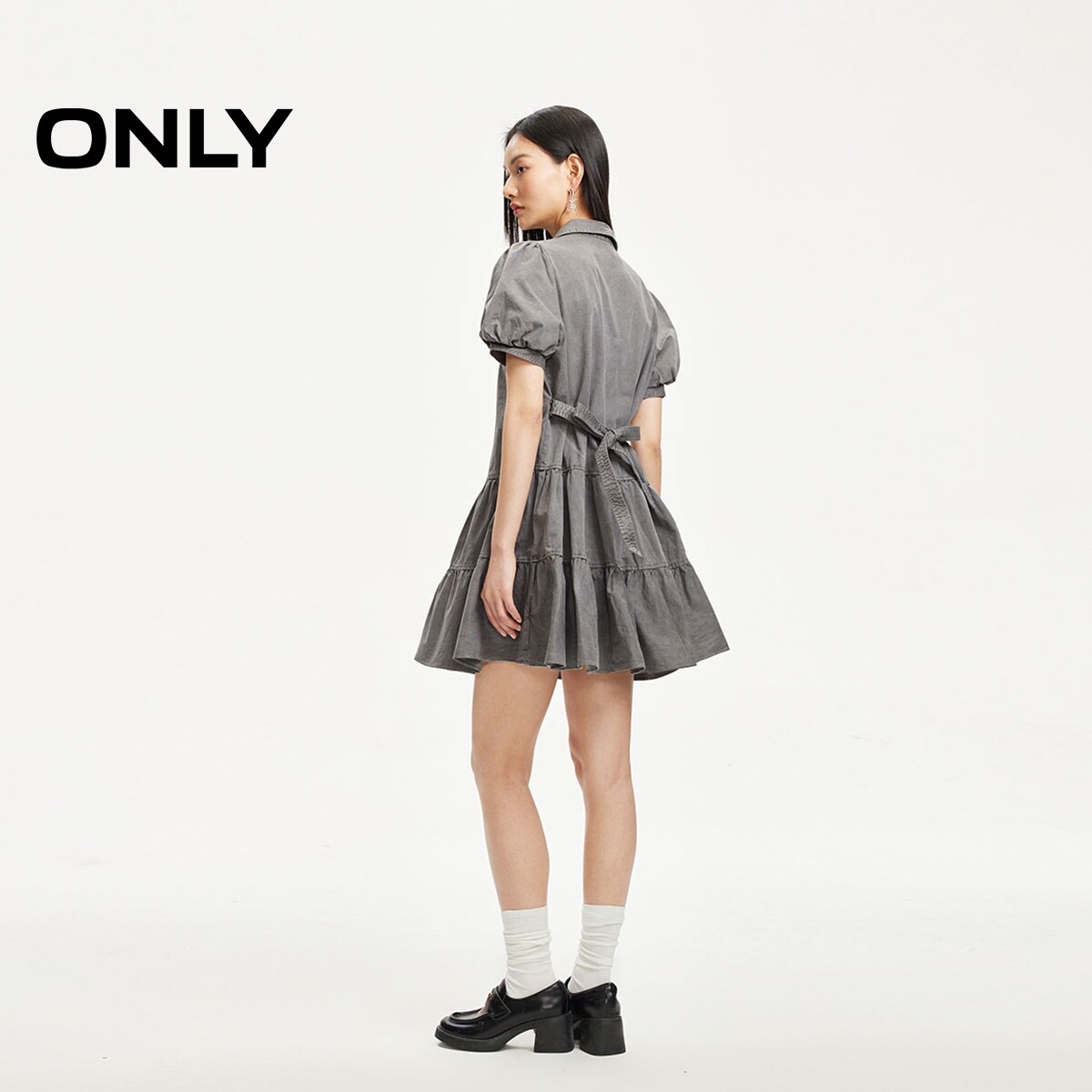 【ONLY奥莱】春季新款时尚学院风泡泡袖翻领短裙连衣裙女
