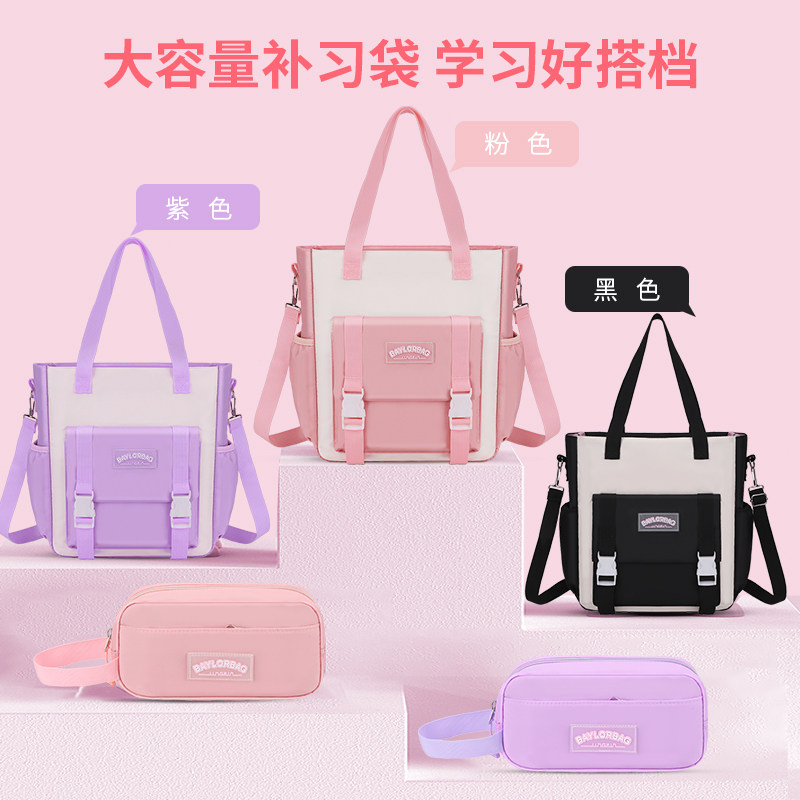 高颜值手提袋补习袋儿童粉色拎书袋A4书大容量补课袋小学生斜跨袋女生公主美术袋饭盒袋作业袋轻便出行减负