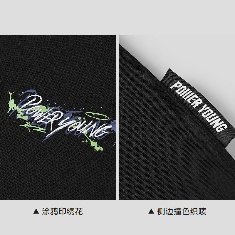 简约休闲 涂鸦印绣花 罗纹圆领