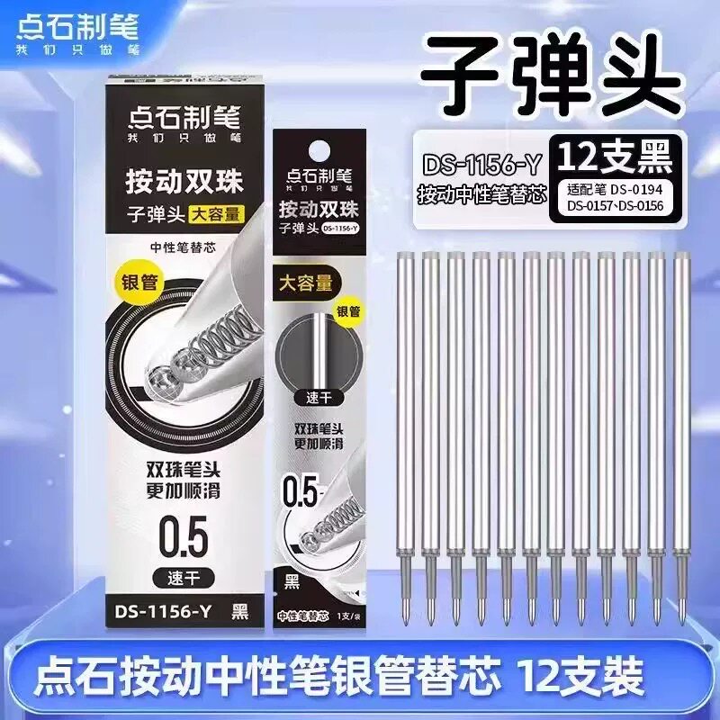 点石深海舱奇幻限定专用笔芯1156Y双珠顺滑子弹头黑色速干笔芯0.5
