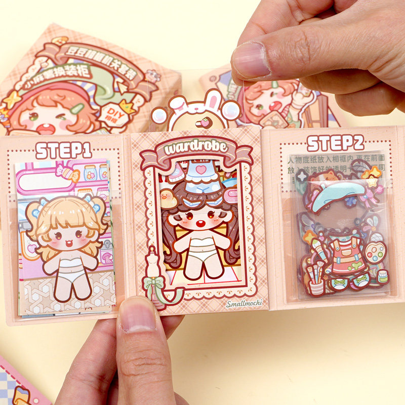 duga多加小麻薯豆豆相框机关套装贴纸书女孩儿童解压玩具手工diy装饰图案卡通贴画迷你换装豆豆贴纸本安静书