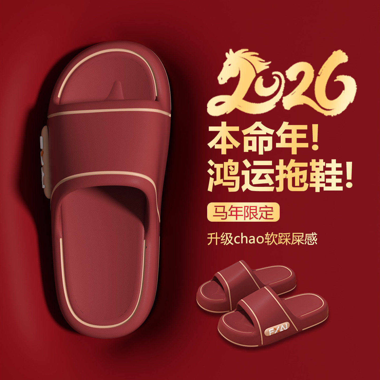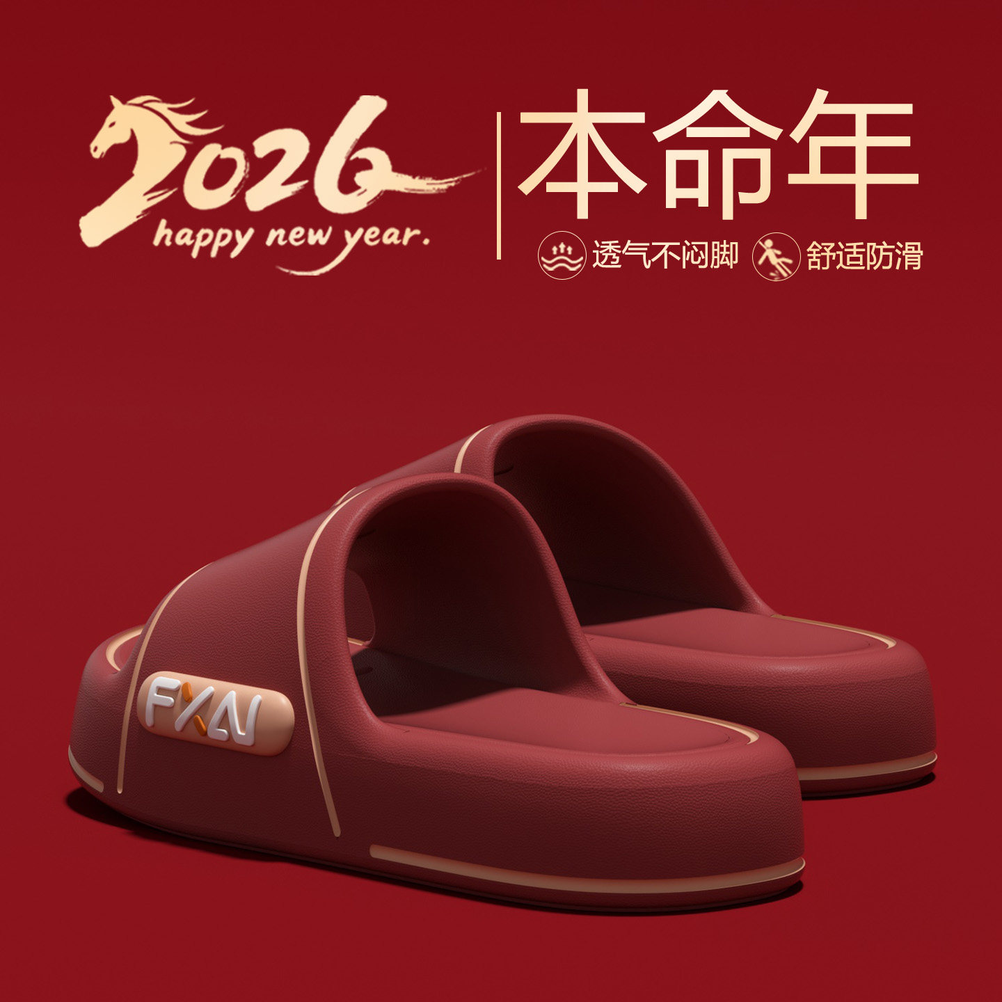 本命年红色拖鞋女2026新款室内居家用浴室洗澡防滑外穿凉拖鞋男士