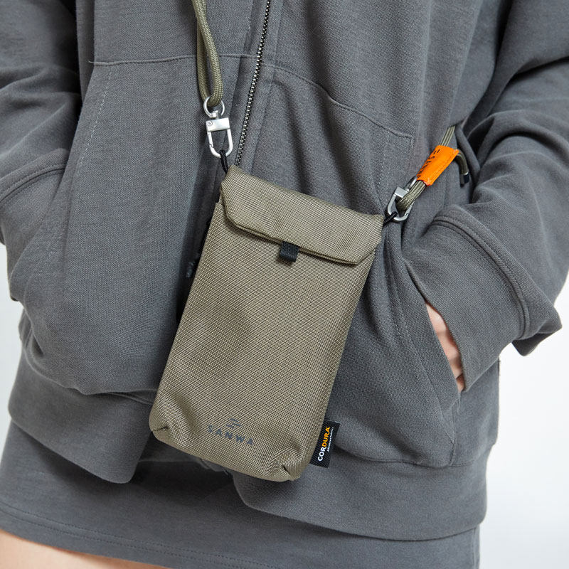 日本SANWA数码收纳包尼龙斜挎包时尚单肩小包男女休闲轻便挂脖随身便携旅行斜挎包手机潮CORDURA风琴包
