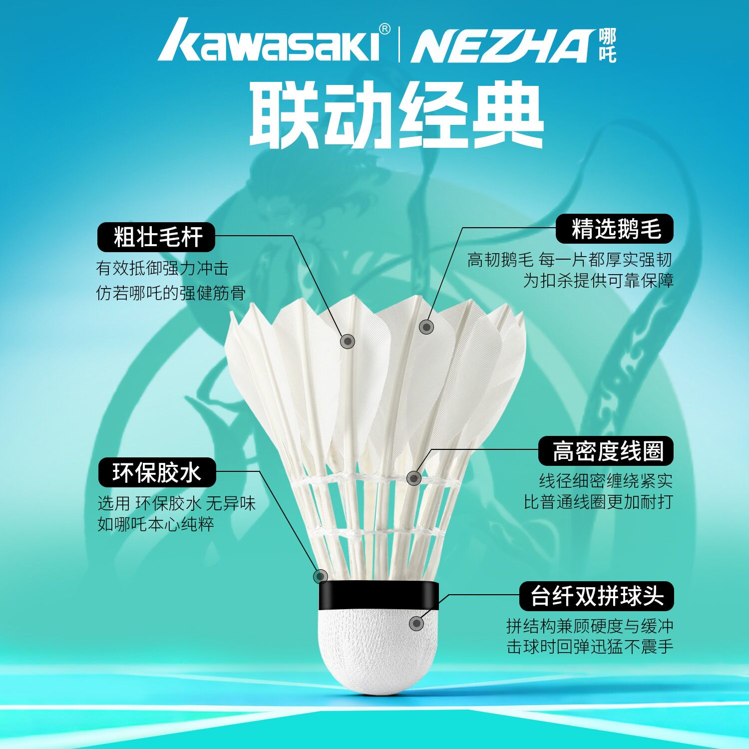 kawasaki川崎哪吒9号羽毛球鹅毛鸭毛耐打训练球专业比赛稳定飞行