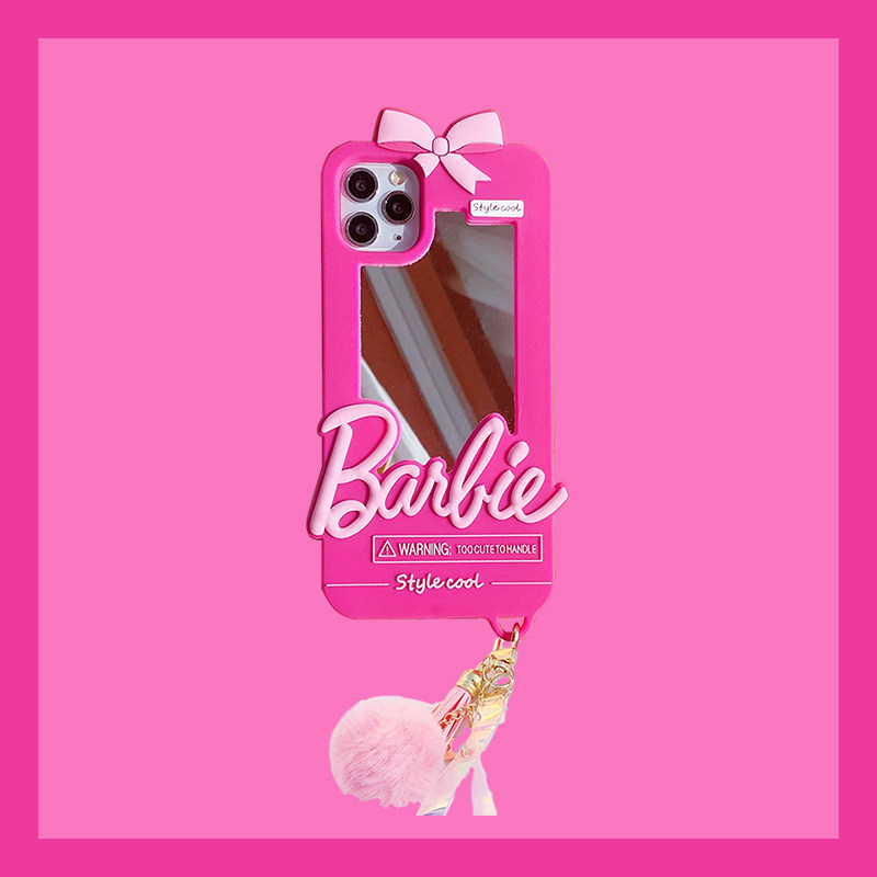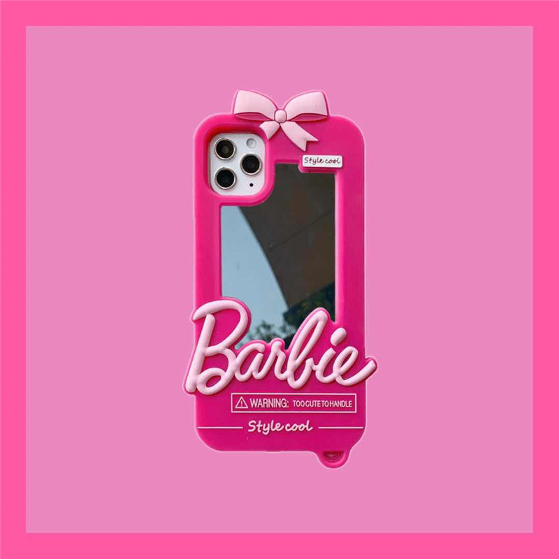 可爱芭比镜子适用苹果15手机壳iPhone16plus全包14promax保护12/13mini软硅胶套11带挂绳xs萌xr潮678女新款se
