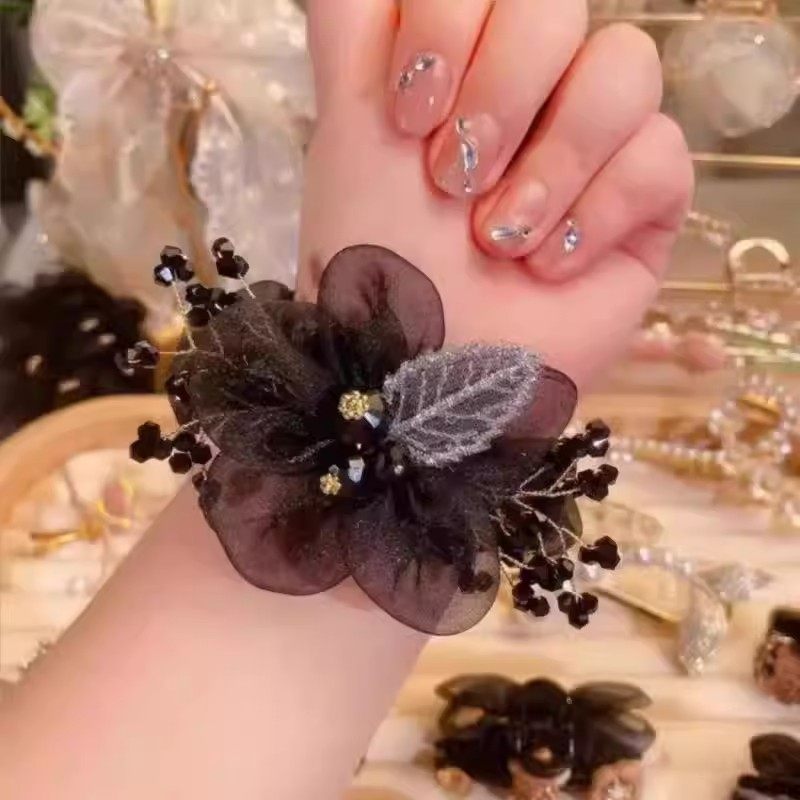 网红2025新款头花发圈大肠高级感头绳女扎头发绳皮筋头饰夏季水钻