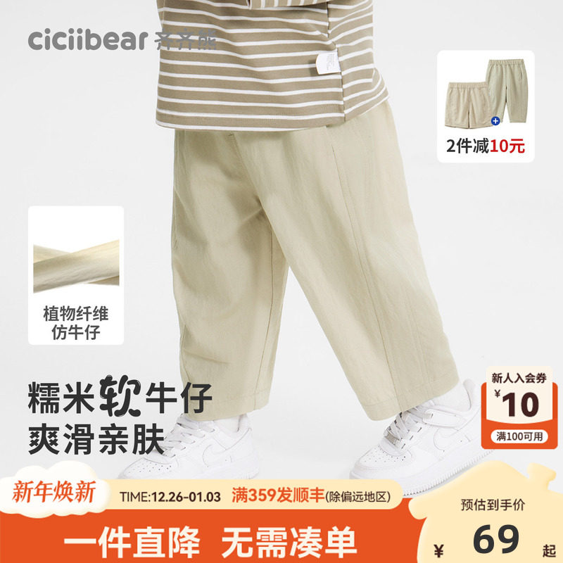 [凉感天丝牛仔九分裤]齐齐熊男童裤子夏季宝宝防蚊裤儿童薄款童裤