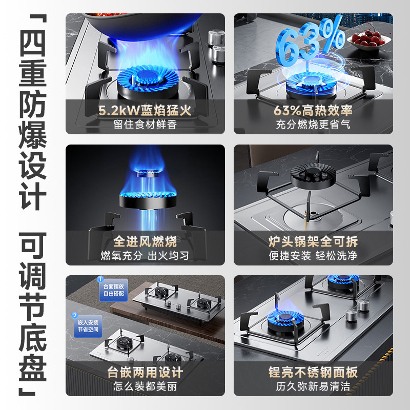 5.2kW蓝焰猛火 63%高热效率 全进风燃烧