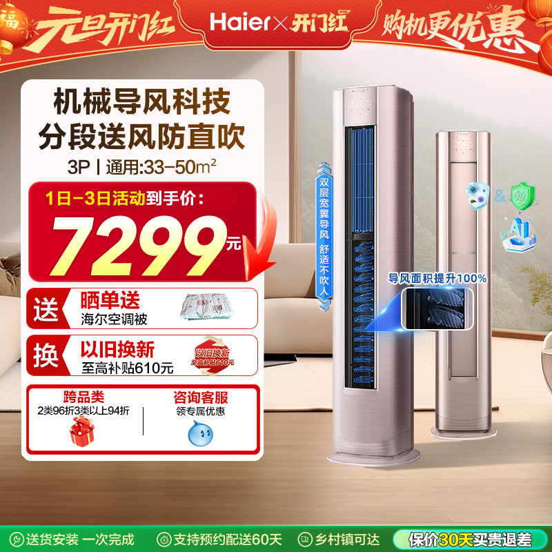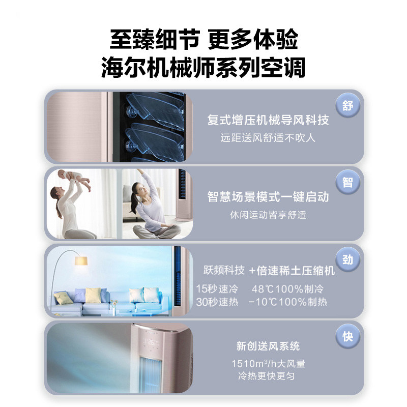 【智慧送风】海尔空调机械师家用官方3匹新一级变频立式柜机72EAB