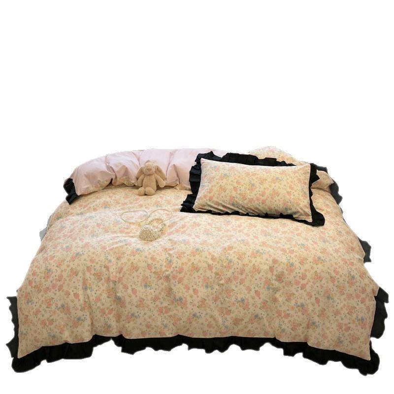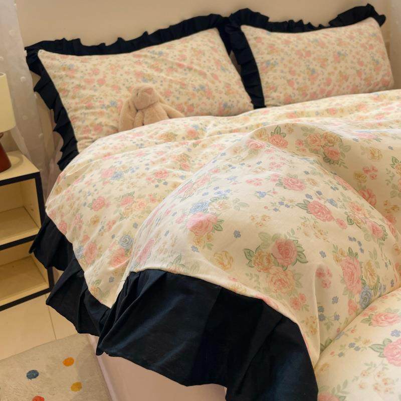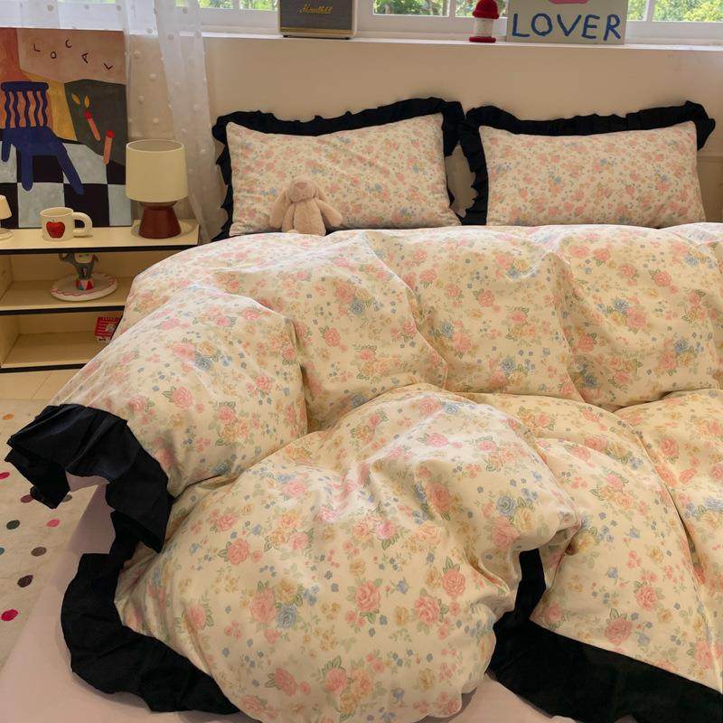 田园淡雅小清新花边款全棉床上四件套a类纯棉1.5m1.8被套法式床品
