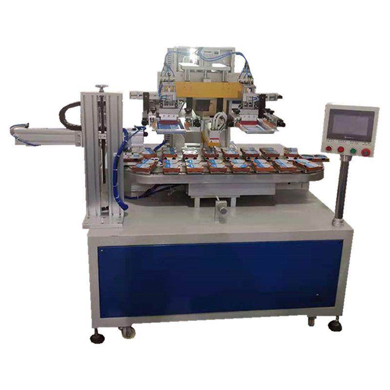 全自动双色转盘塑料盖丝印机膏霜盒盖丝网印刷机塑胶盒丝印机