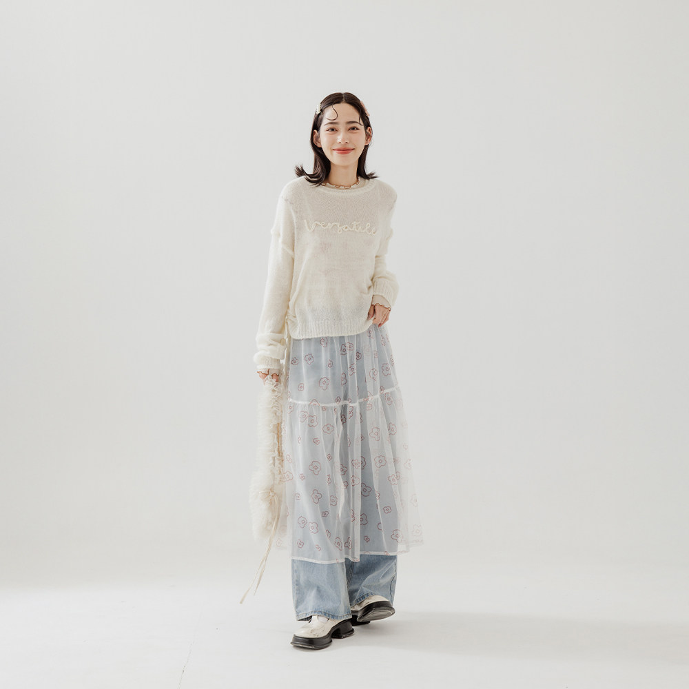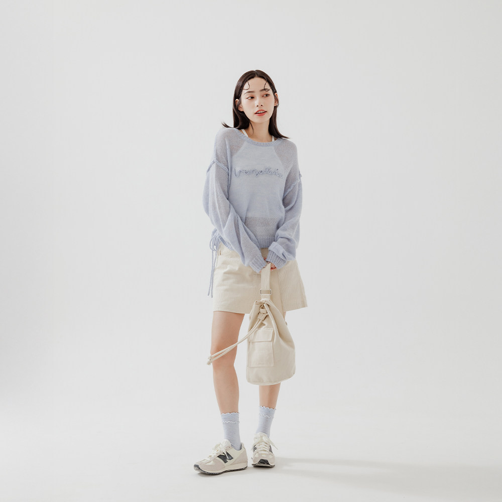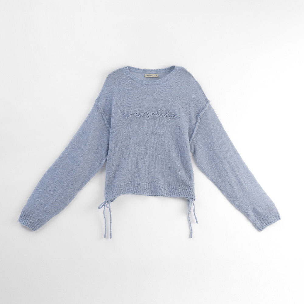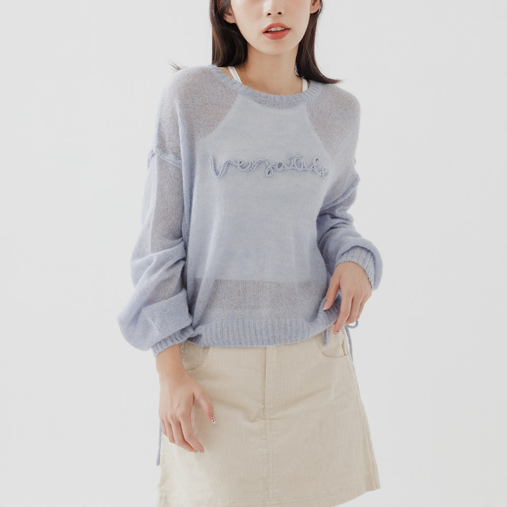 QUEENSHOP 2025秋冬新品女装质感下摆抽皱英文字针织上衣01013469