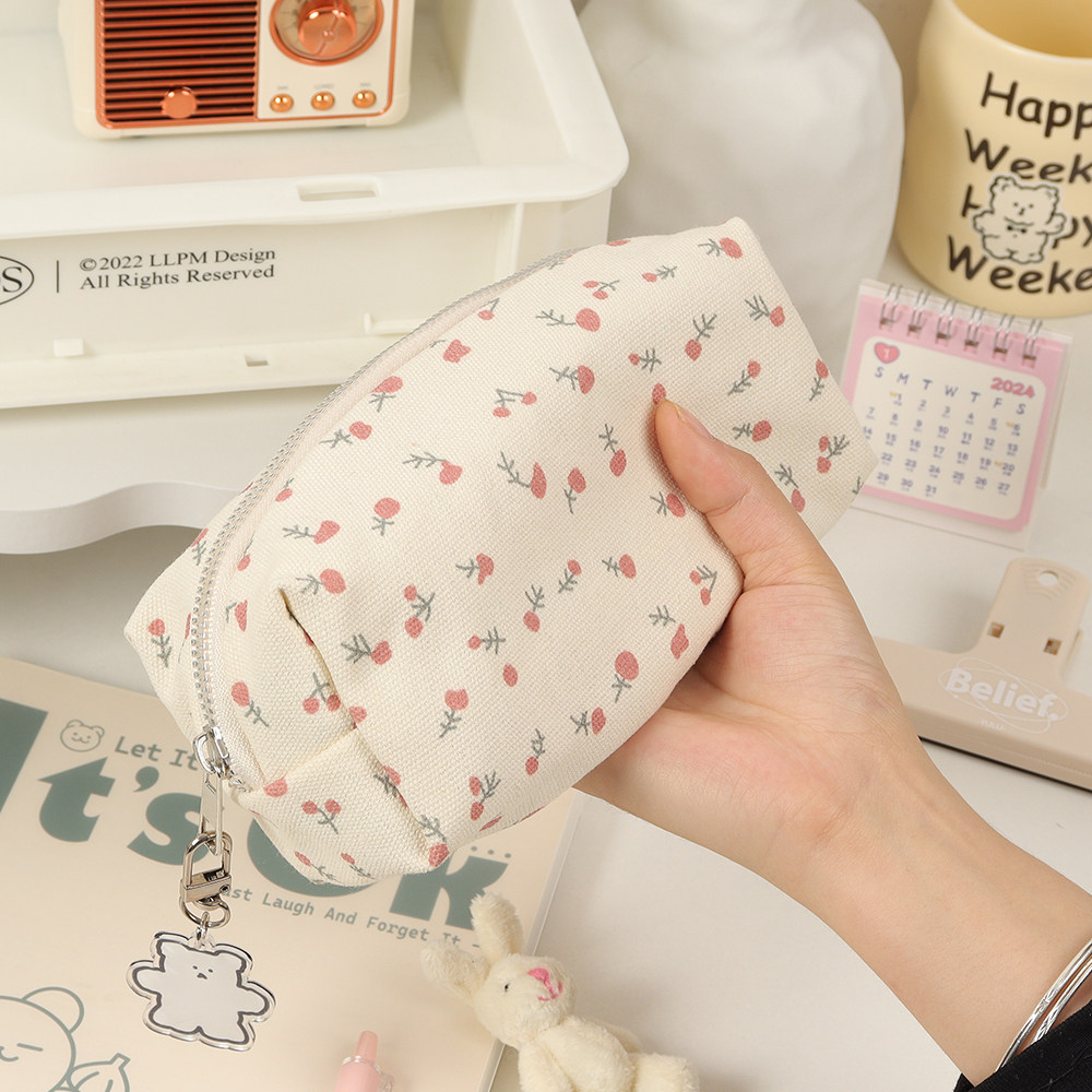 奶油碎花小清新笔袋女学生大容量文具铅笔盒甜美可爱化妆品收纳包