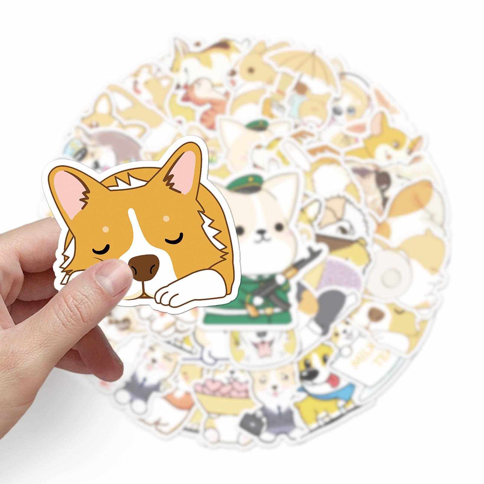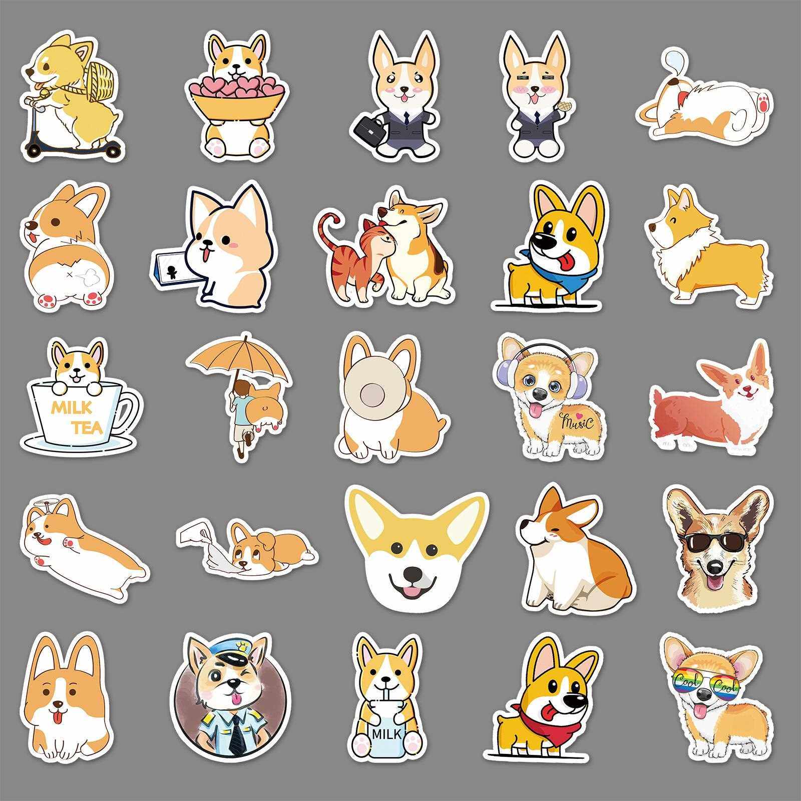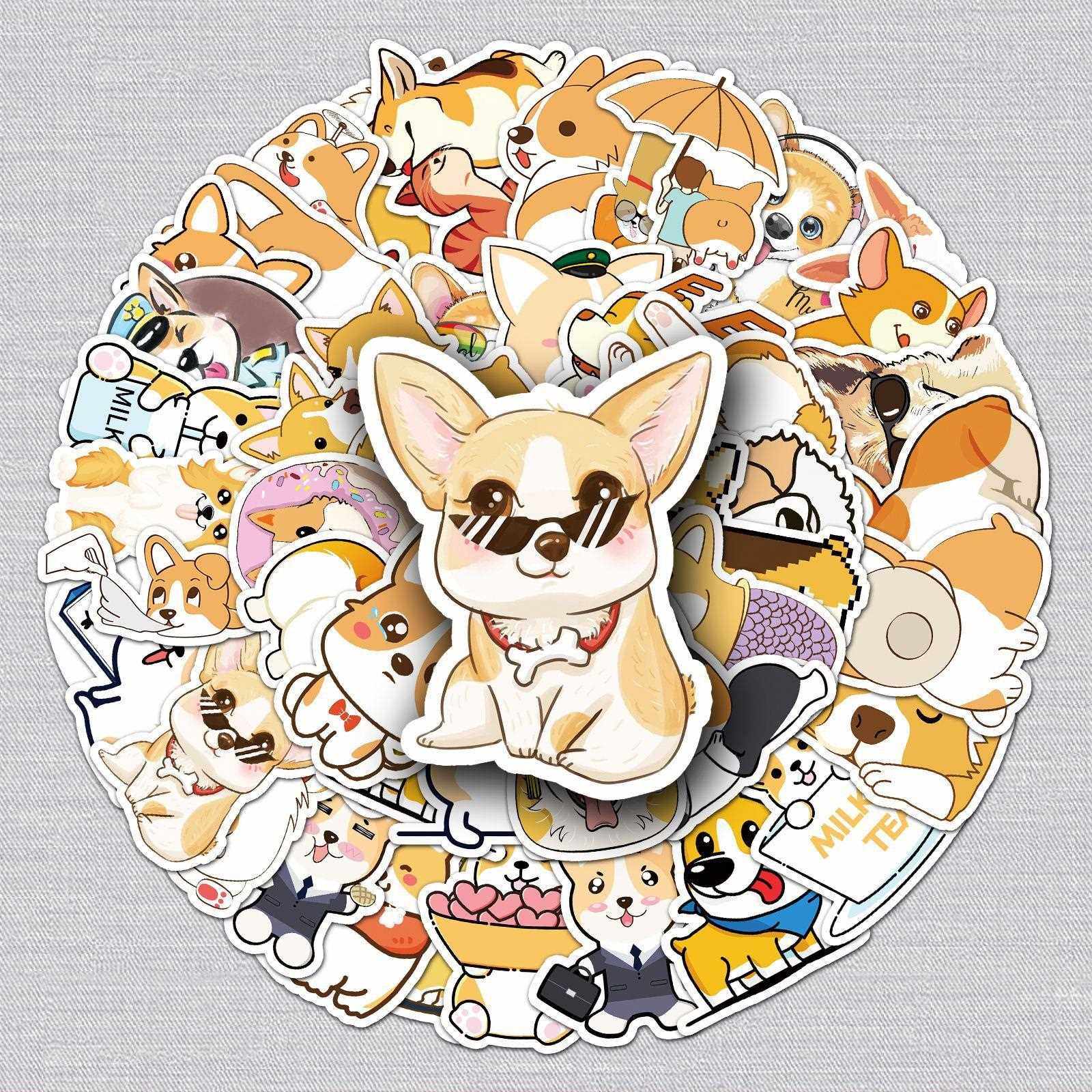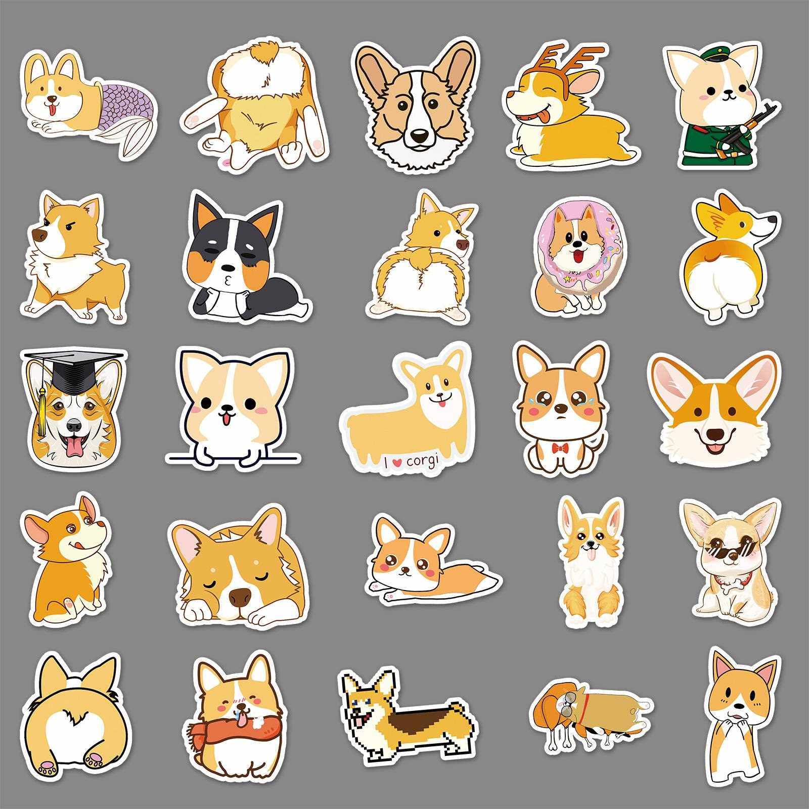 新款直销50张卡通柯基涂鸦贴纸行李箱自行车摩托车防水汽车手机装