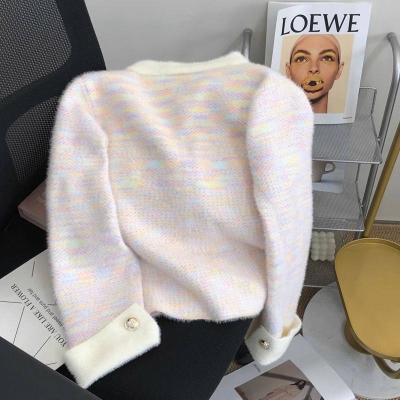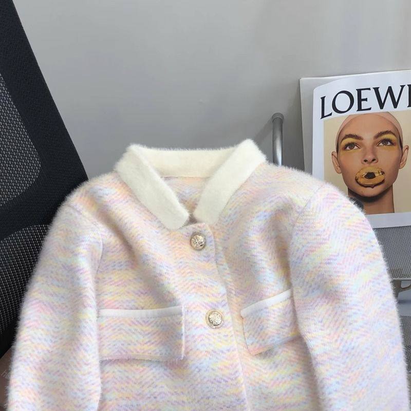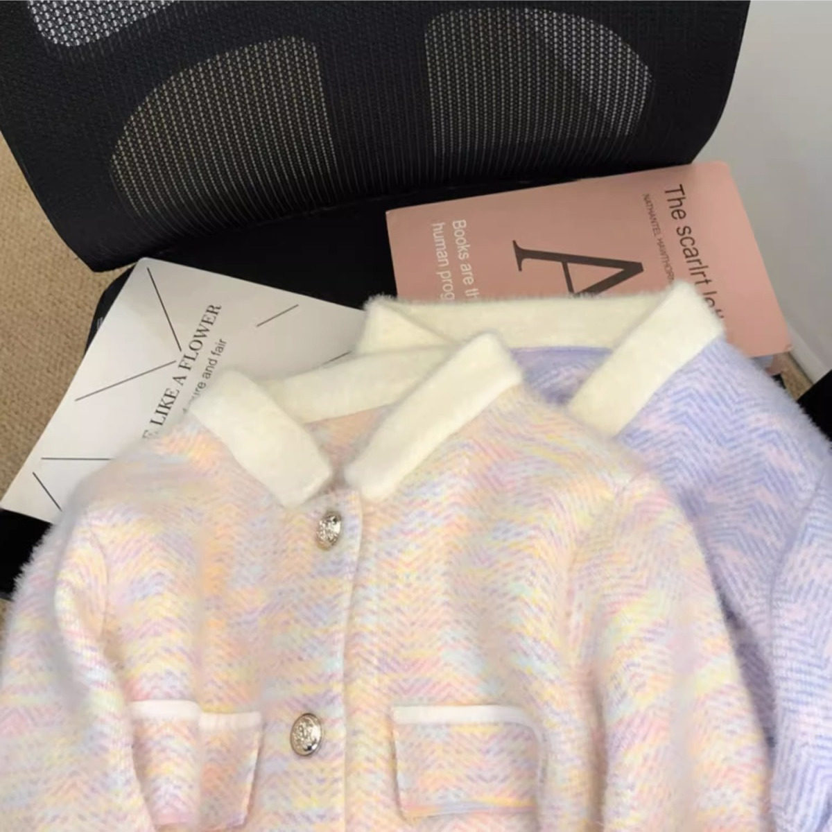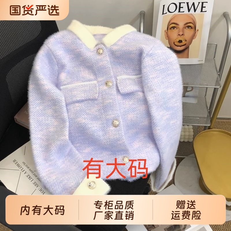 仿水貂绒高级感小香风开衫女春秋polo领加厚毛衣大码内搭针织上衣