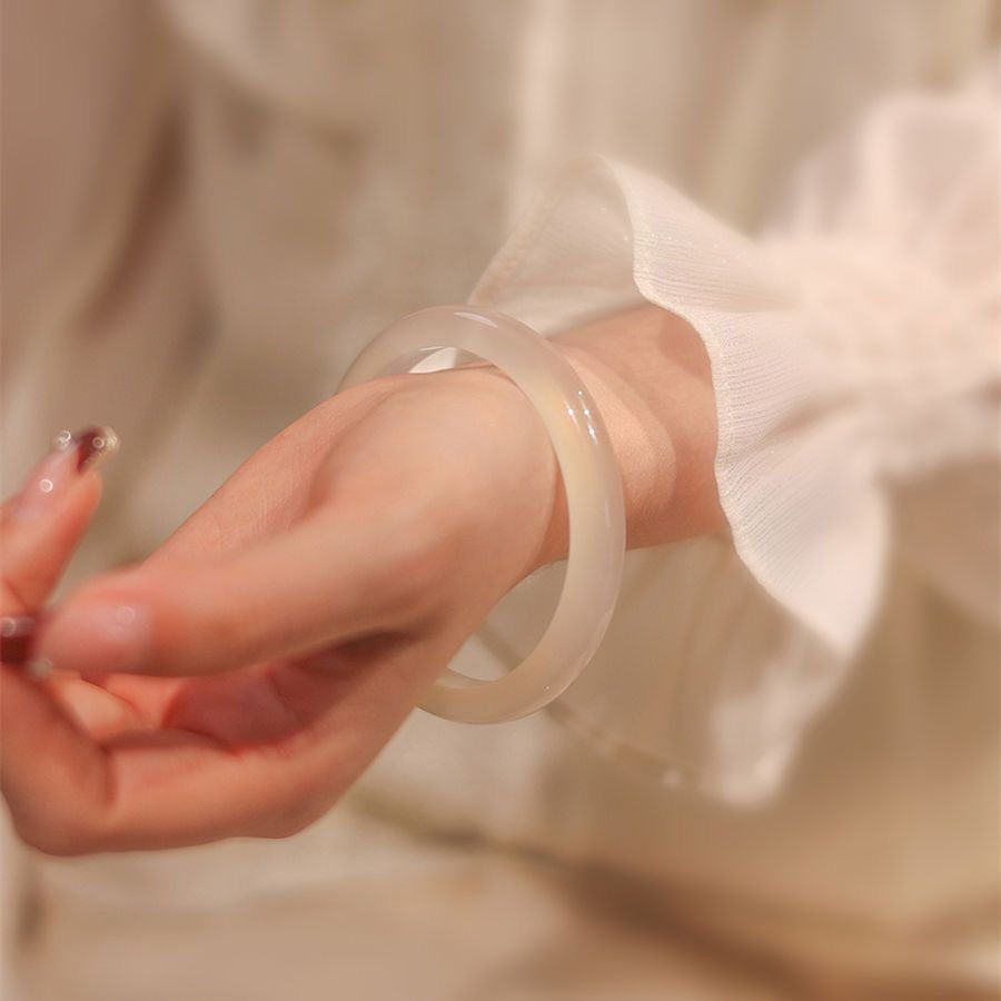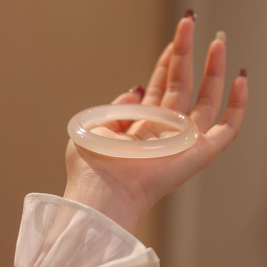 天然高冰透白月光玛瑙荔枝冻玉髓玉手镯马料女香槟翡翠情人节礼物