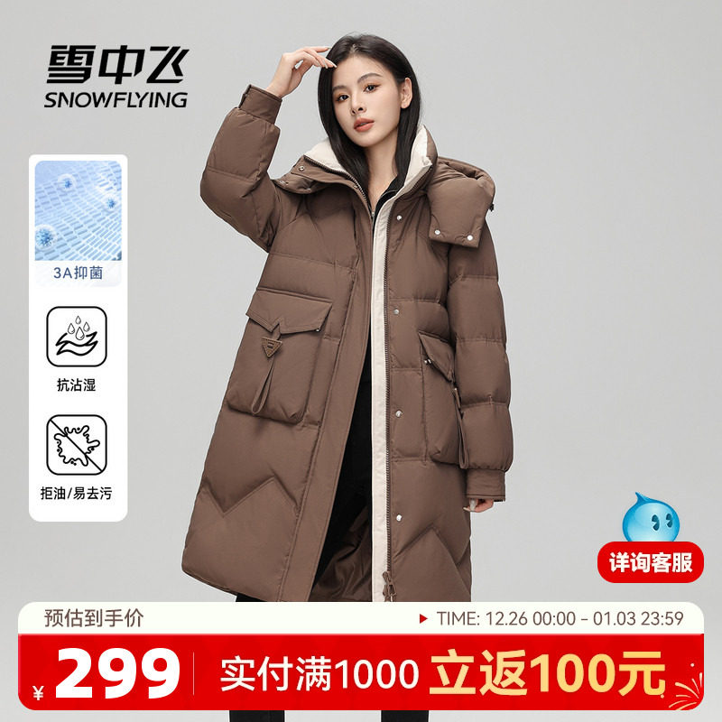 雪中飞2025冬新款女士中长款羽绒服三防可脱卸帽廓形韩版气质暖