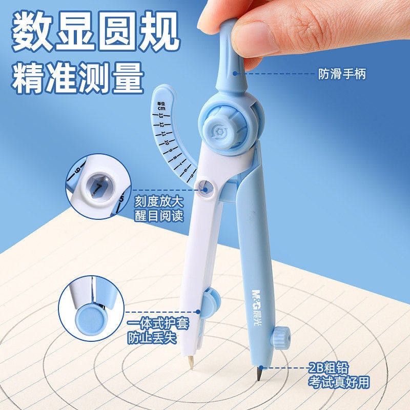 晨光数显圆规小学生专用按动初中生用高颜值多功能锁距尺规初高中生专业绘图套装儿童制图可替换笔芯画图神器