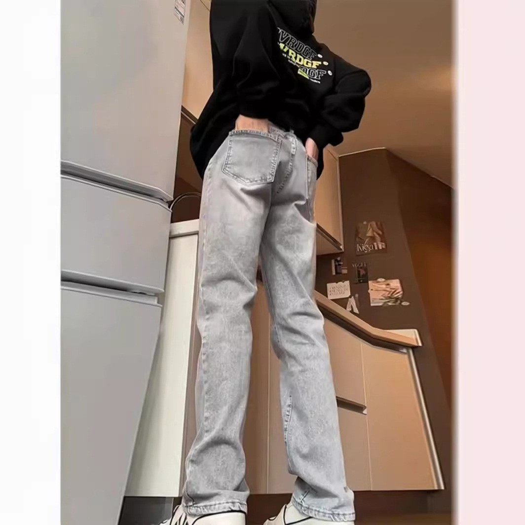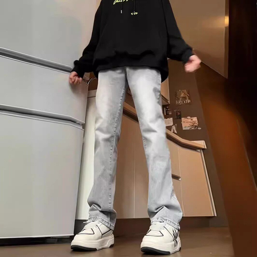 男士牛仔裤2025新款水泥灰直筒牛仔裤春秋季牛仔裤男款微喇裤子
