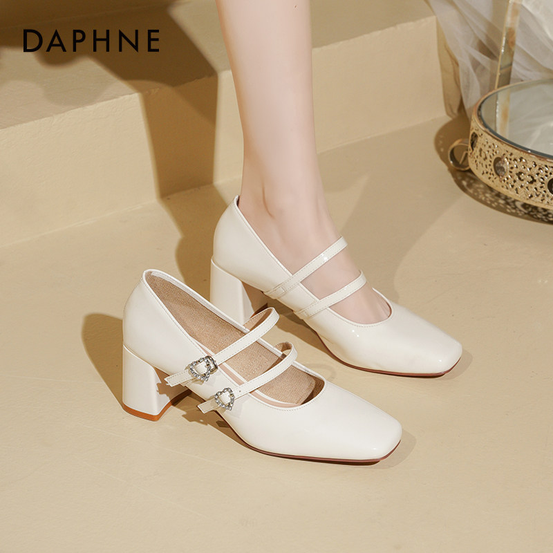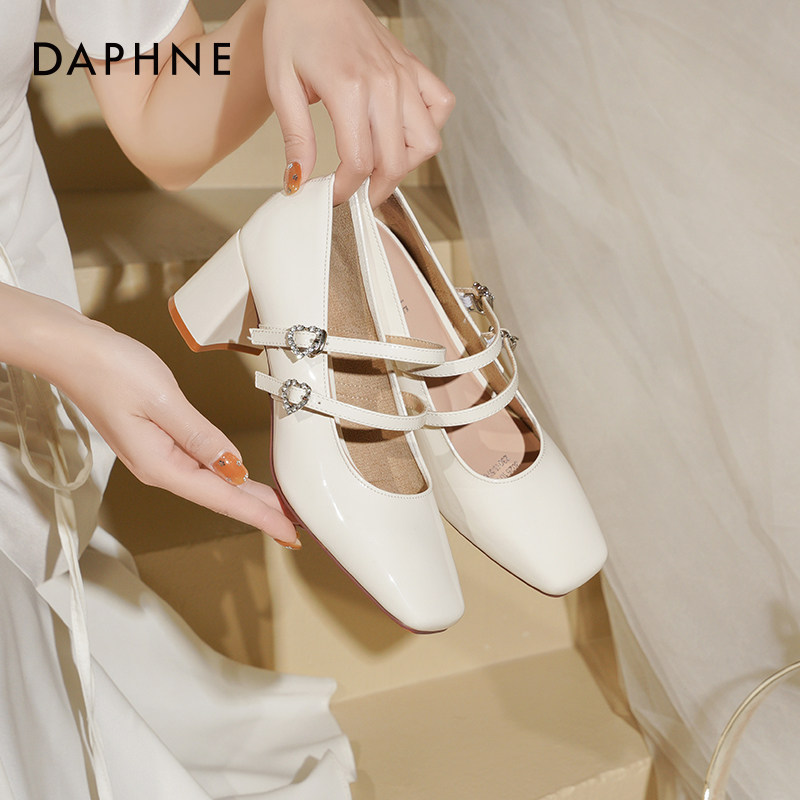 达芙妮粗跟高跟鞋女2026新款春季法式婚鞋配裙子白色玛丽珍鞋子女