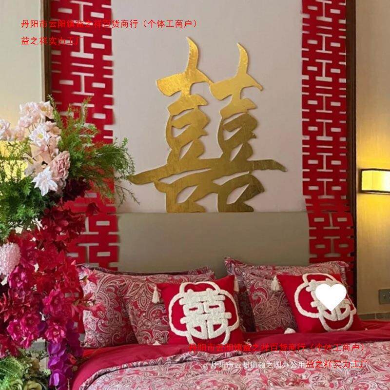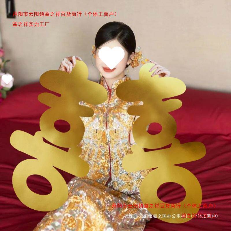 KT板金色喜字结婚装饰大囍字订婚礼婚房布置新娘晨袍拍照道具