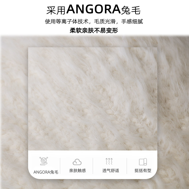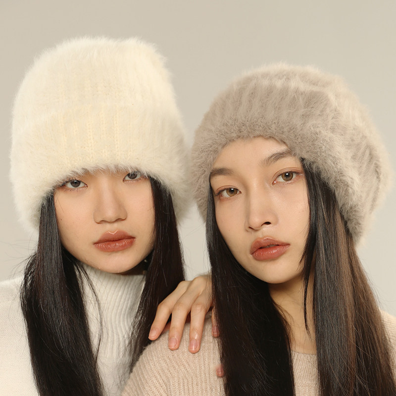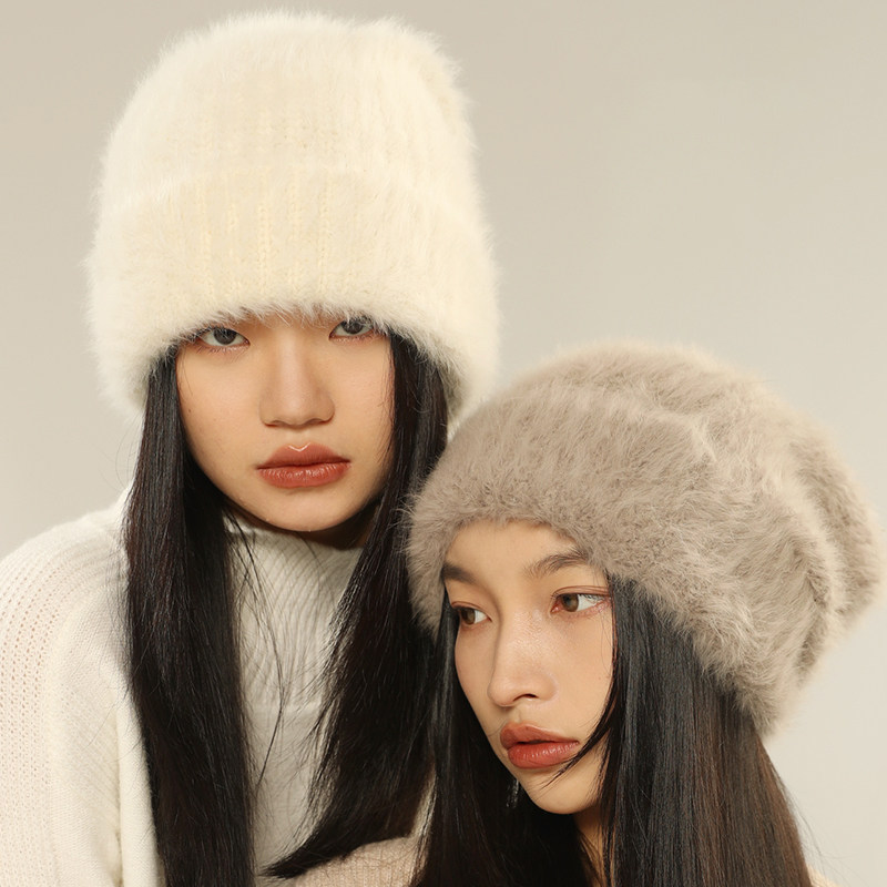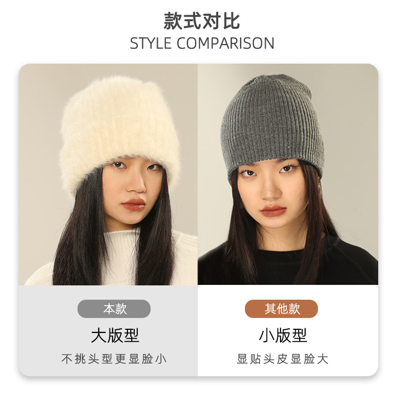 Classy key新加坡设计师联名款秋冬兔毛毛线帽女白色大头围针织帽