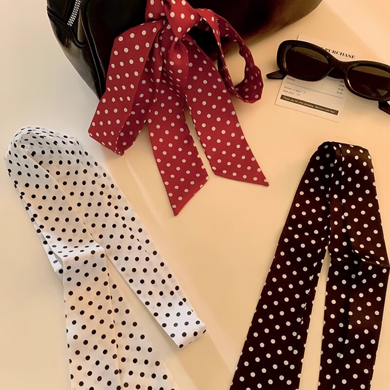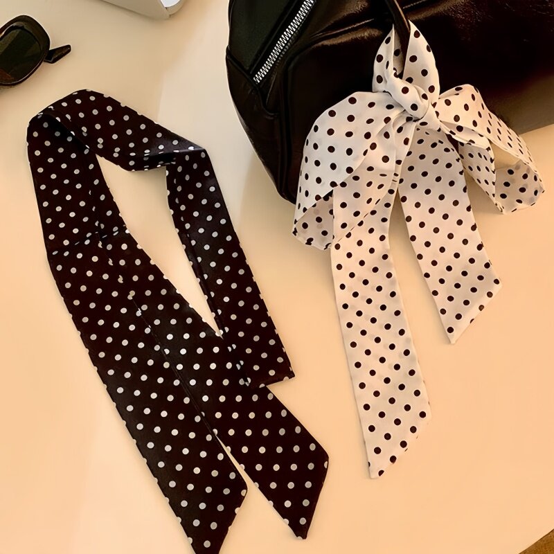 复古系脖黑色波点丝巾女2026新款高级感韩系长条飘带百搭领巾发带
