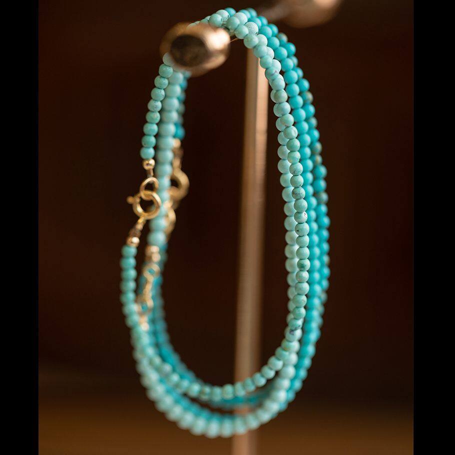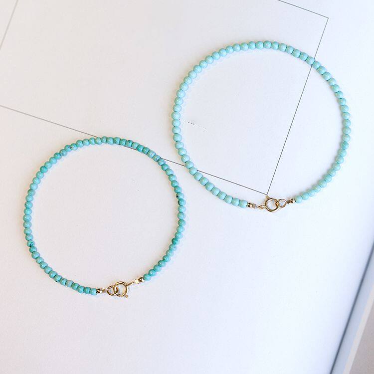 新款天然极细松石绿手链女文玩手串圆珠夏小珠子生日礼物古风复古