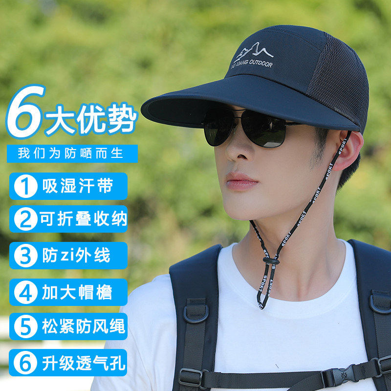 帽子男士夏季户外鸭舌帽大檐防紫外线太阳帽防晒棒球帽遮阳钓鱼帽