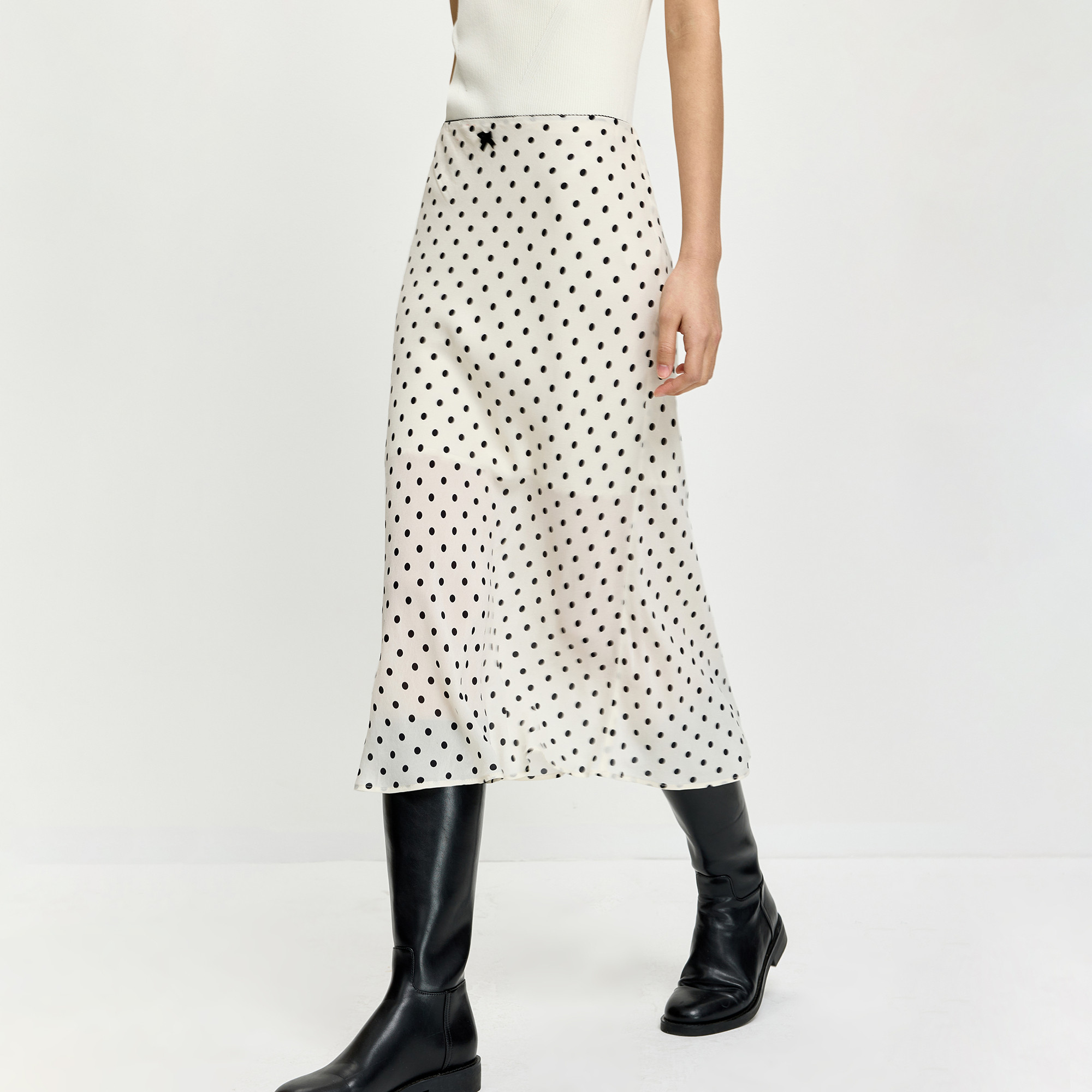 LILY2026夏新款莱赛尔混纺复古波点气质通勤米白色鱼尾裙半身裙女