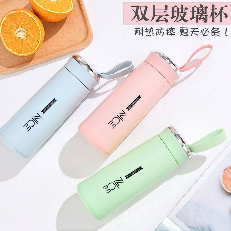 奈斯杯高颜值双层玻璃杯学生情侣杯高档隔热杯喝水杯保温带盖便携