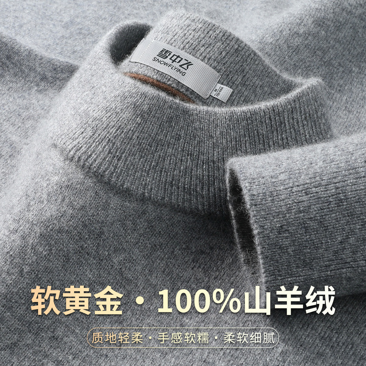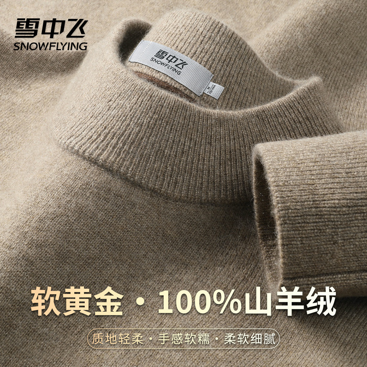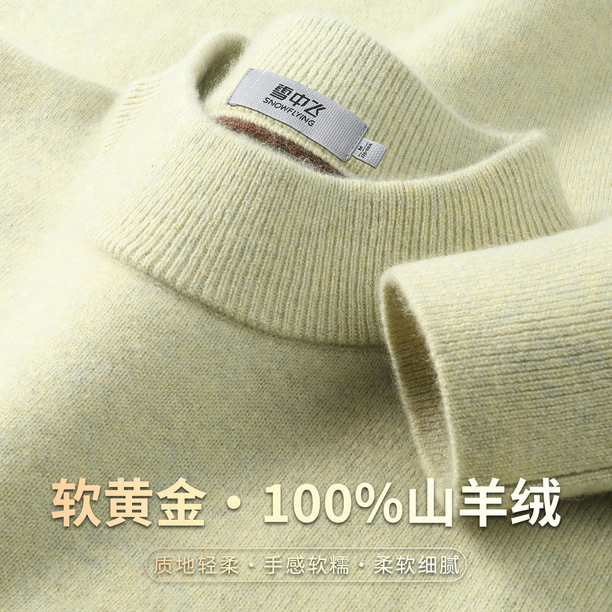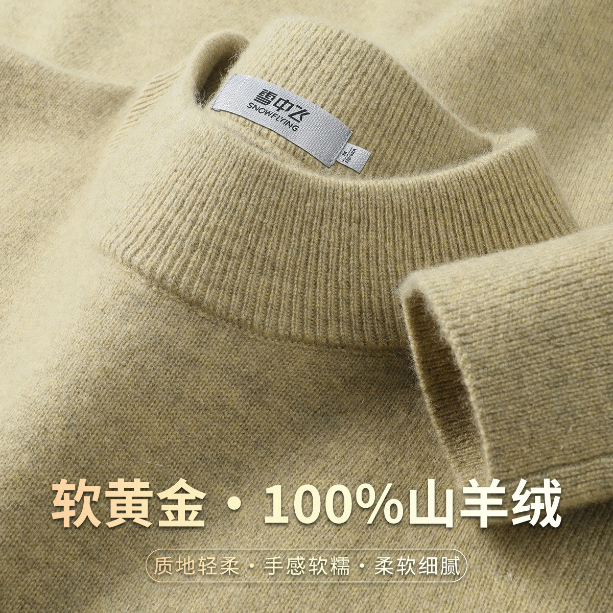 雪中飞厚款【“软黄金”100%山羊绒】半高领男士羊绒衫纯色毛衣W