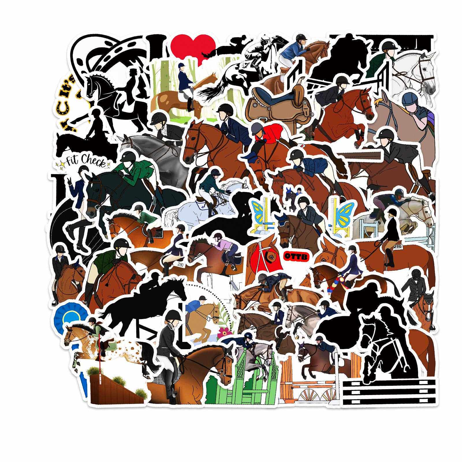 直销新款50张马术运动潮流行李箱贴纸涂鸦贴纸笔记本时尚滑板车冰