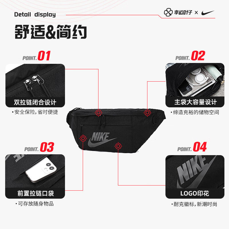 耐克NIKE休闲运动腰包男女胸包王一博同款大斜挎单肩包DB4697-010
