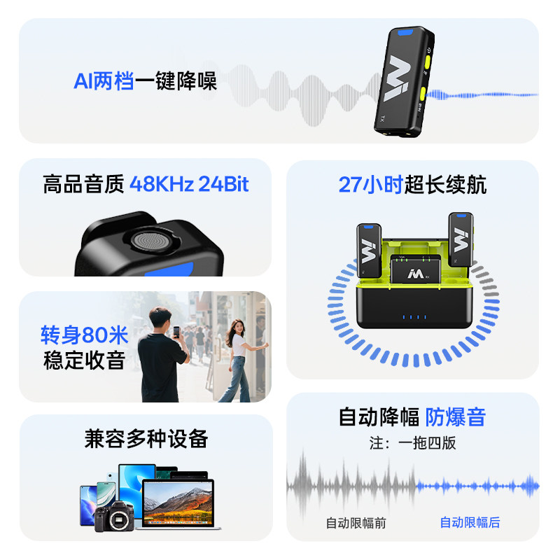 麦拉达X5无线领夹式麦克风手机直播迷你收音麦小蜜蜂录音降噪设备
