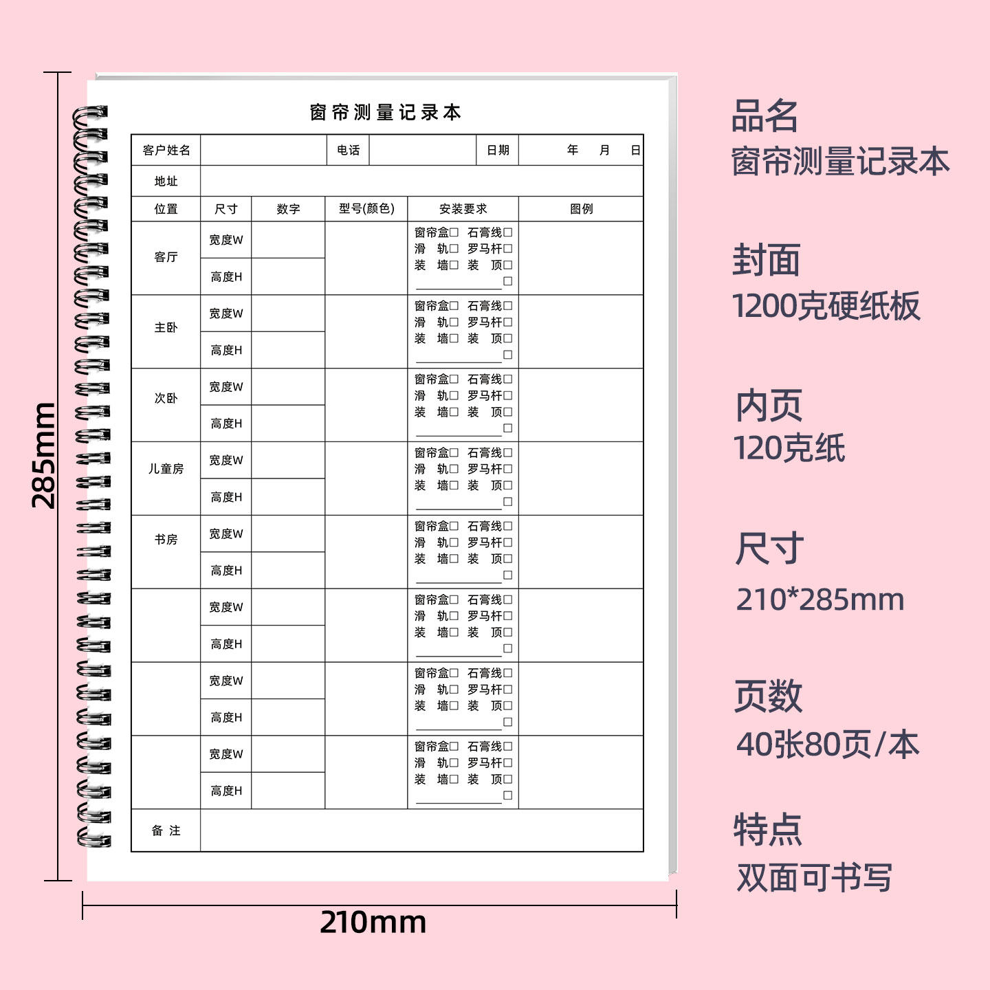 窗帘测量记录本全屋定制测量专用本窗帘布艺尺寸定制测量本测绘本
