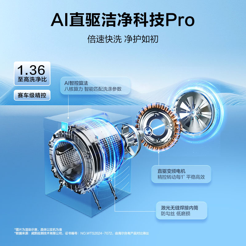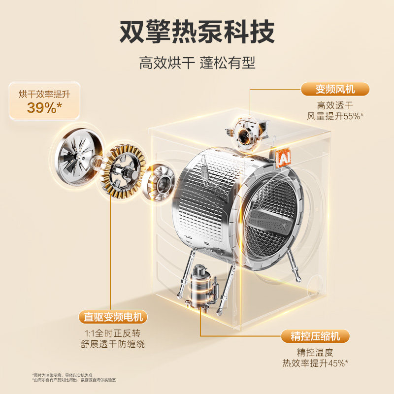 【云溪标尺热泵洗烘一体】海尔滚筒洗衣机家用全自动13kg大容量D3