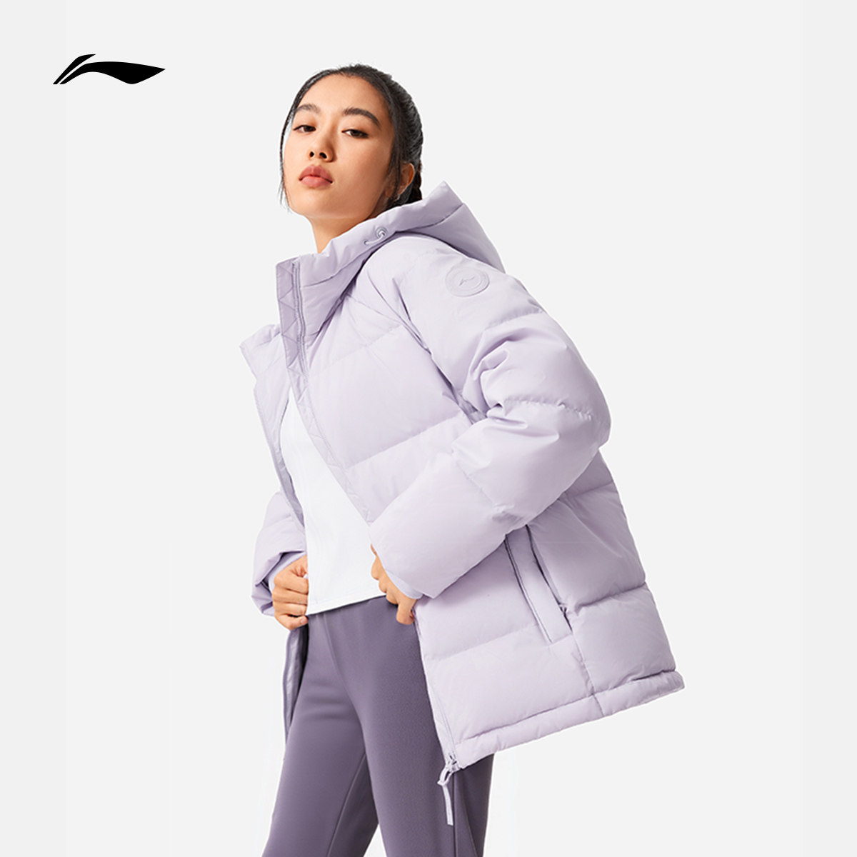 李宁短款短羽绒服女士新款连帽百搭大衣秋冬保暖鸭绒上衣运动服女