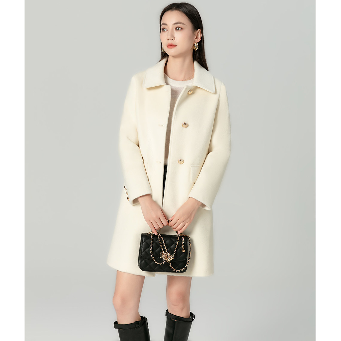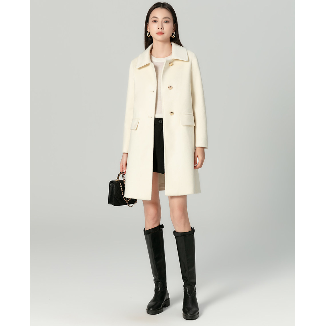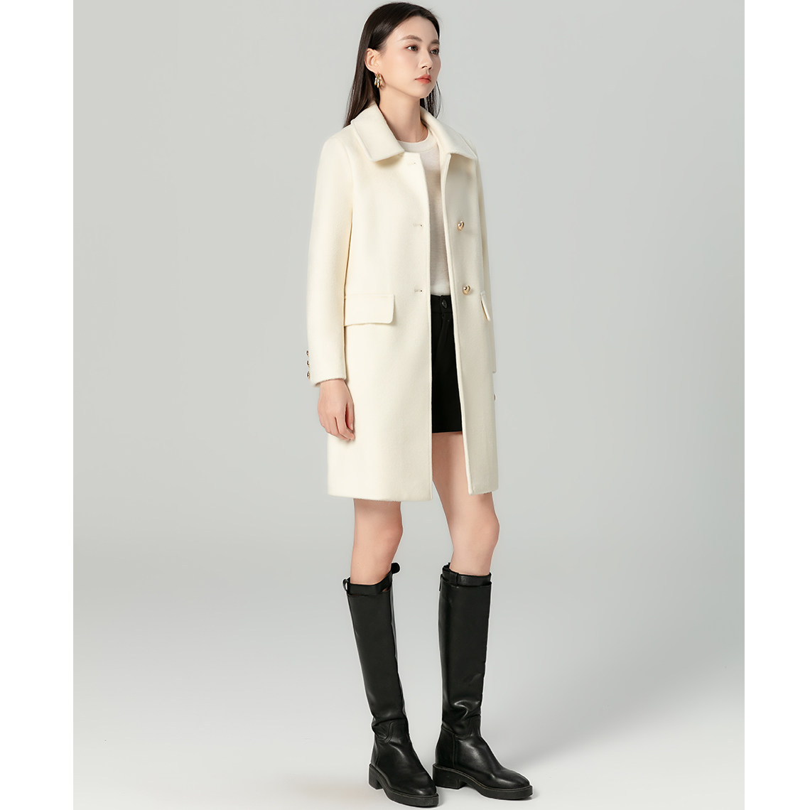 中长款白色羊毛呢大衣外套女2026秋冬单面羊毛呢大衣小个子外套女
