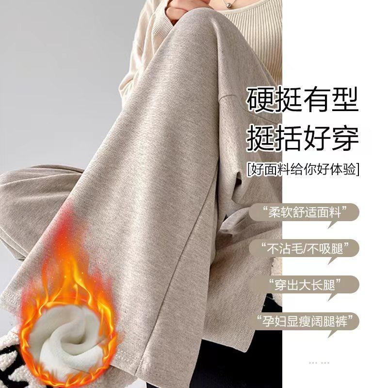 孕妇裤冬季加绒加厚2025新款羊羔绒直筒裤子时尚外穿秋冬款阔腿裤